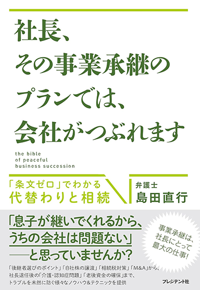 中小企業経営者を長年サポートしてきた弁護士の島田直行氏が、経営者と後継者に向けて、事業承継に挑む際の心構えを説いた1冊です。