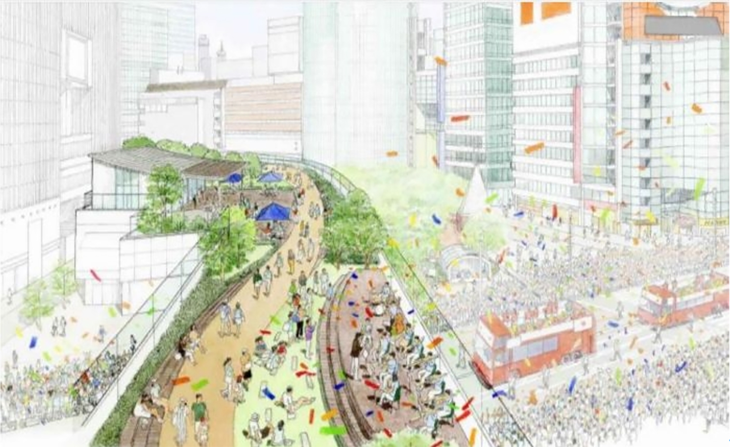 一方、東京で初めての高速道路であった数寄屋橋川の埋め立てで建設されたエリア南側の東京高速道路(KK線)が、新たな都市環状ルートへの接続整備によって、高速道路としての機能が不要となることで歩行者中心の公共空間「Tokyo Sky Corridor」として活用されることになった。ニューヨークの「High Line」を契機に始まった高架道路、高架鉄道の跡地の歩行者空間への転換が東京の都心でも実行に移されることになった。これによって隣接するビルへの接続でアクセスが行われ、利便性の向上のみならず、災害時の避難動線の確保にも役立つことになる。これによって、現在、高速道路で遮断されているこのエリアから銀座エリアへの歩行者アクセスが飛躍的に高まる効果を生むことになる。