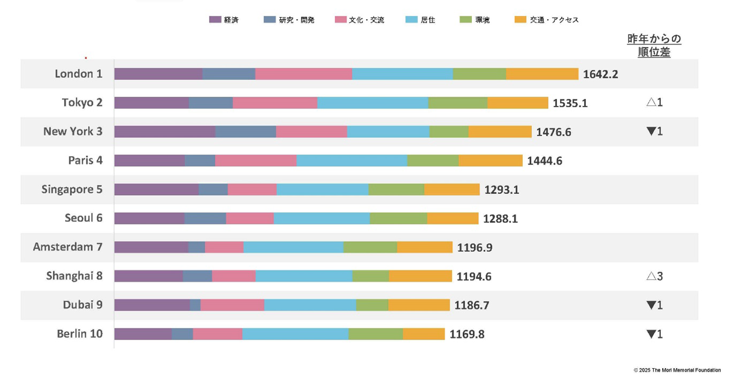 世界の都市総合力ランキング2025で東京が2位に浮上